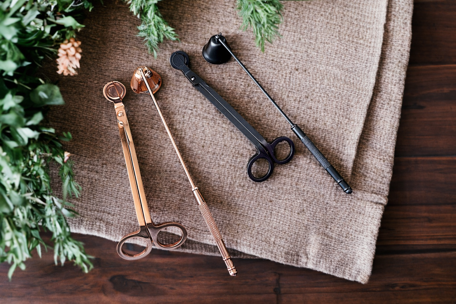 Stainless steel wick trimmers and wick snuffers. Fully optimize your candle experience with this vital tool. Keeping your wick trimmed will cause your candle to burn longer, better, and more fragrant.
